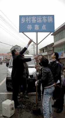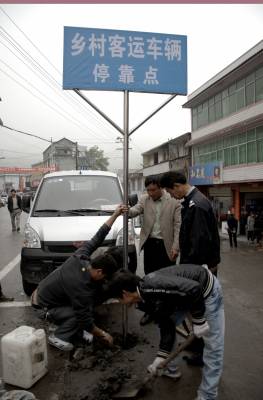 5月23日,恩施市红土乡红土集镇三叉路口,工作人员正在安装“告示牌”。