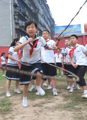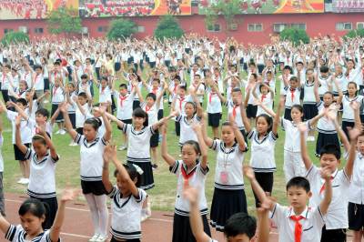 23日,学生们正在做体操,做健康的体育运动。荆州市沙市区实验小学延长课间操时间,开展广播操、跑步、跳绳等多项运动,增加学生的运动量,锻炼身体,增强体质,并有效的缓解文化的心身疲劳,让学生们健康成长。 (记者 杨平 摄)