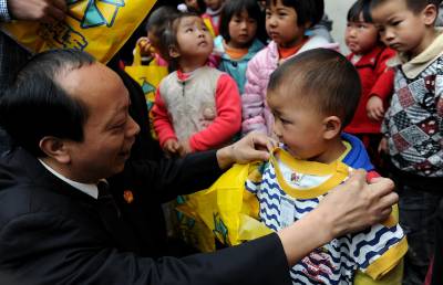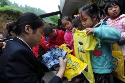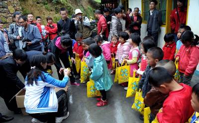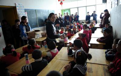 > 志愿者为留守儿童送关怀迎六一