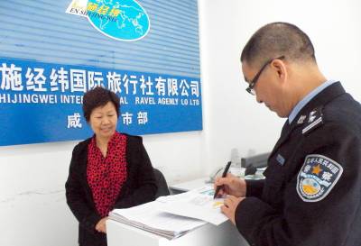 5月24日,咸丰公安、交通、安监、旅游联合开展道路旅游客运市场稽查行动,行动小组首先对我县所有旅行社进行了安全稽查。
