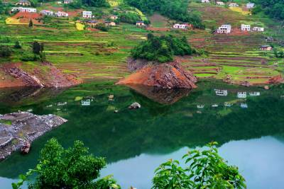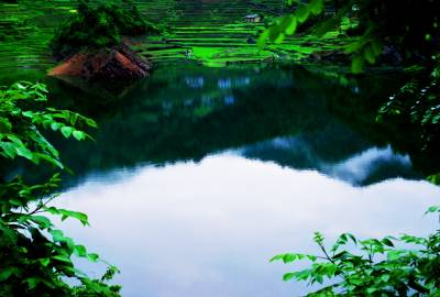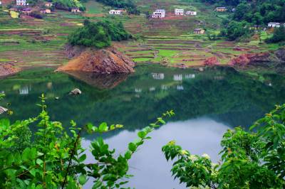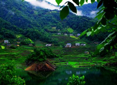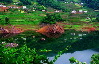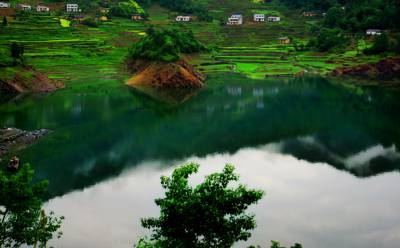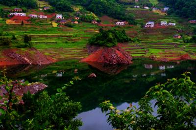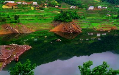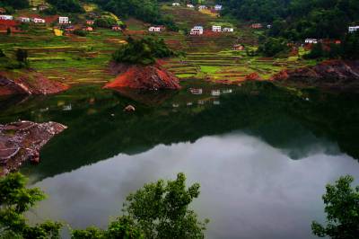 这组《美丽人间》风景照拍于竹溪泉马家坝村。竹溪的泉溪是一片山青水秀,低碳环保,风景如画的风水大地,传奇文化低蕰丰厚的神奇大地——如易进难出的神秘的“八卦山”八卦山上的“八卦阵”流芳千古史的闻太师,薜仁贵大决战的万亩只生矮草不生木的“大营盘”大营盘上至今还有一百多座文太师之墓。据当地老百姓广传——泉溪的大营盘秘似只能远看,不可身临的神龙架的神龙殿。青天白日的,只要你一攀爬上大营盘的边沿,大营盘上就猛然下起雷风瀑雨,妖雾遮目迷道,只能后退,不能前进。还有“八仙沟、八仙寨”八仙寨上还有“八仙庙”庙里还有八仙下棋的“八仙桌”。庙和棋桌在“文革”时当作“破四旧”给砸了。还有“犀牛望月”和“月亮岩”,照片的背景那座山就是“犀牛望月”的犀牛山,美丽的村庄就分布犀牛肚子上。牛头朝上望着“月亮岩”上的月亮。月亮岩和八卦山毗邻相依位于龙泉圣水万江的下游。月亮岩上只有半弯月形的一个石窟窿。月亮岩曾经有过很辉煌的历史-——没有考证多少年前月亮岩傍居住着一家有人在朝庭为官的大户人家。有位老奸巨滑的盗宝老贼勘测到距大户人家不远的月亮岩上的宝月,于是巧装成叫花子讨饭讨到这大户人家。大户人家的大老婆子素有慈善行善的天良德性,而假叫花子又装得格外可怜样。于是这大户人家的大老婆子不仅让那盗宝取宝的假叫花子饱食一吨盛餐,临走时还给假叫花子一些油盐米面。假叫花子走得不远却走了半又回到大户人,双膝跪到这大户人家主子面前可怜得一付走投无路的才出其下策讨米要饭,“今日有幸讨到您这大户人家,没想到您这等大富大贵人家,从主人到仆人,个个都是慈母善父之心,我边走边想:我不想这样讨饭为生了,只要您老人家肯留我给您家当长工打杂种田地,做牛做马都必干情愿。您大人大贵的就积个大德吧……”假叫花子到底说软了大户人家主子的心,又看那假叫花子只有三四十岁的样,人也诚恳老实。于是就留下那假叫花做长工。假叫花子在这大户人家白天给主人耕田种地做杂活,晚上一到主人睡定,就悄悄溜出去钻那宝月亮。三年后,那假叫花子突然不翼而飞。主人在房前和周围寻找假叫花子长工时才发觉距家几百米远的老石岩怎么就出现了半月形尺把深的石坑坑,才后悔原来是软心肠留下了盗宝贼。主人以往竟没发现那儿有个价值他几大户人家全部财产的月亮宝!真是有眼不识货呀!还有石门山,石门山是由此山天生一道石门而得“石门山”。没有考证是多少年前,竹溪汇湾靠近泉溪厥山的一处盆地生出一棵双竹,后来那片风水宝地就更名为“双竹园”至今,据传那棵双竹就是开泉溪石门山那道石门的钥匙,有个财迷心巧的人在知道秘密后的某个晚上偷偷摸摸地砍掉那棵石门钥匙双竹,到石门山开开了石门,走进石门里,里面却是若大一个城市,那城市的街道道上却人在招乎两头驴子推豌豆,他看着看着就看信了,招乎驴子的人见他站那看着不走就说:“您实在想要就给你两升。那人心想:只要你给我就拿到,多漂亮的豌豆啊!那人接了招乎驴子的人给他的两升豌,招乎驴子的人就催他,说:“你快走,一会主人来了看到了不好”,于是他就慌忙地回头往转走,一走出石门,就听那石门“叮咚”一声关了,把他吓一大跳,才猛然惊过来,才想起开石门的钥匙双竹丢到里面去了,他伸手使劲去推那石门,石门却文丝不动,他才后悔莫及。于是就恨不得甩掉那两升豌豆,又觉那两升豌豆怎么沉得让他有些吃力,打开口袋一看,咿哟嗨:原来不是豌豆,是金豆子,他更加恨自己不长记忆,丢了开那宝库石门的钥匙——双竹,又恨他自己无取出双竹石门钥匙的回天之力。还有:有道是“不到长城非好汉”我看为人不到竹溪泉溪八卦山一游更遗憾……请看下面一组美丽人照片,您看那卧在水库里半露半淹的那道山梁像不像一头巨大的海像啊?(视界网 垚 堃 摄)