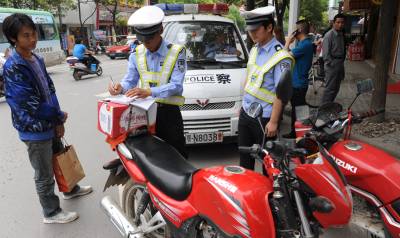 潜江市交警支队一大队交警对摩托车违法行为进行查处。该市合理调整警力部署在3月开始启动摩托车交通违法行为专项整治工作,在不放松城区交通秩序管理的同时,集中力量严查由摩托车摩托车交通违法行为,由摩托车引发的交通事故大大减少。吴燕军 戴仙荣 摄