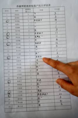 5月25日,在秭归县茅坪镇乔家坪村委会群众议事恳谈室,该村正在对2012年度的农村低保户开展民主评议。