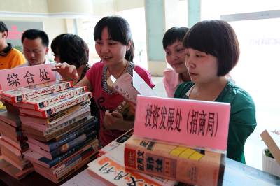 26日上午,武汉阳逻经济开发区机关“漂流书屋”正式启动。开发区机关全体干部职工,每人捐出两本以上自己喜欢的图书,盖上专门印制的“图书漂流”专用书签。捐书者在书签上填写自己的单位、姓名和推荐理由,将书放到专设的漂流书架,进行图书漂流。通过这种形式,引领和推动干部职工读书活动的开展,形成读书氛围,促进学习型机关建设,逐步形成开发区特有的书香机关特色。