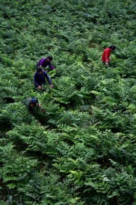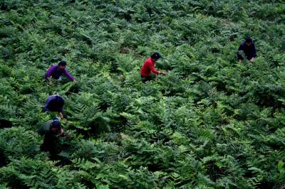 5月25日,在海拔1000多米的秭归县茅坪镇乔家坪村四组,村民正在薇菜、木瓜种植基地里除草。