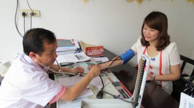 5月27日,英山县长冲中学组织全体教职工到该县疾病防控中心进行全面的免费健康体检。体检的内容有血常规、尿常规、心电图、胸透、B超、妇科等一些常规项目。这次免费体检举措,充分体现了学校对教师的关心和爱护,真正把关心教师的措施落到实处,深受教师们的欢迎。图为疾病防控中心医生正在给该校教师进行体检。 (石小兵摄影报道)