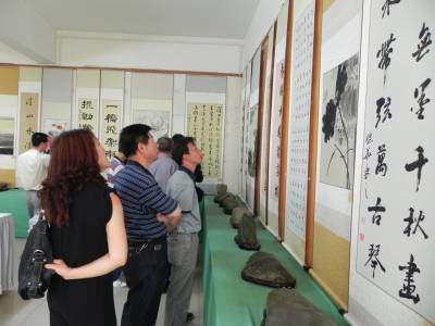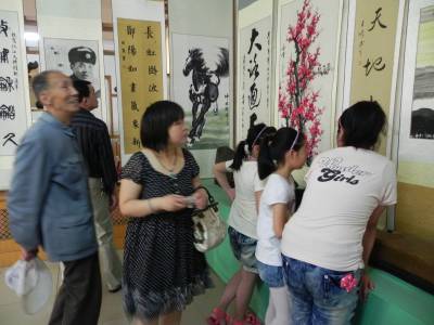 郧县:“大美郧阳”书画展 喜迎大桥通车庆典 5月27日,十堰市郧县“大美郧阳”郧阳汉江大桥通车庆典书画展在郧阳博物馆展出,此次大展共展出书法作品51幅,美术作品36幅,出席郧阳汉江大桥通车庆典仪式上的囯家及省市领导和群众观看作品展。据悉,郧阳汉江大桥于2008年9月26日开工建设,2012年 5月28日的试通车。试通车当天,除举行通车仪式庆典之外,还将举行花车巡游、焰火晚会、答谢宴会等系列活动。(本报视界网 张传郧 摄)
