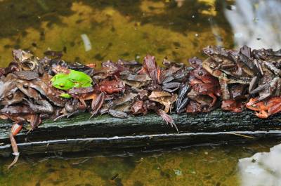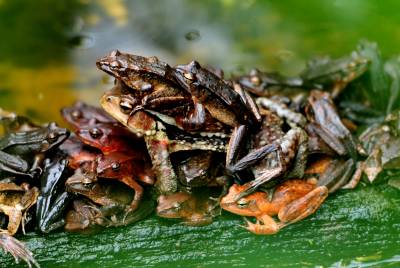 据林业专家介绍,这种蛙类“大聚会”是蛙类繁殖时节出现的正常现象。春季毛毛细雨到来之时,天气变暖,适宜的气温和水域给蛙类的发育、生长、繁殖创造了条件。这时,雄蛙首先选择适宜的水域环境,大声鸣叫,招引雌蛙,结果,多种蛙类、无数只蛙“会聚”到同一水域,寻找配偶。