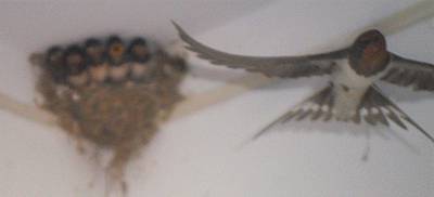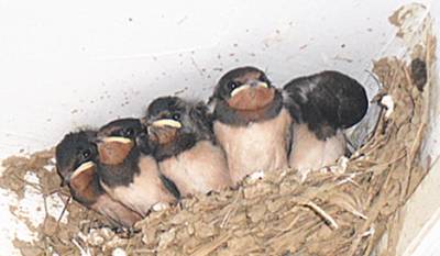 自古至今,宜昌人传承视燕子为吉祥物的习俗,希望能有春燕来家里筑巢生蛋,繁衍后代。习俗还认为,小燕子能飞向天空自己独立生活时,还得先捕回食物,反哺两天在窝里不再外出寻食的燕爸燕妈。2012年春,宜昌市夷陵区分乡司法所的楼梯间转角处,新筑了一个用泥巴和野草垒成的燕子窝,母燕和公燕正在抚育小燕。5月23日,笔者去拍摄照片,由于光线和位置因素,图片效果不佳,但看了以后还是觉得十分有趣。(本报视界网 袁国悦/图文)