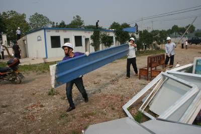 在施工现场,由城管局、公安、开发区等部门组成强势的拆迁班子,分工明确。30多名城管人员与施工人员一道,拆的拆,搬的搬,二小时后,整个板房被彻底拆除。拆下来的建筑材料被分门别类地放在了附近,由业主自行处理。