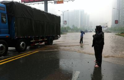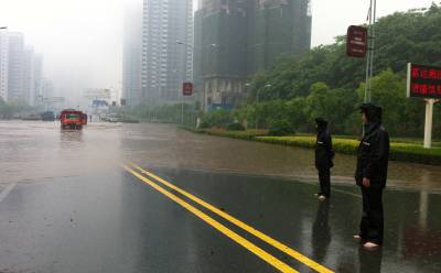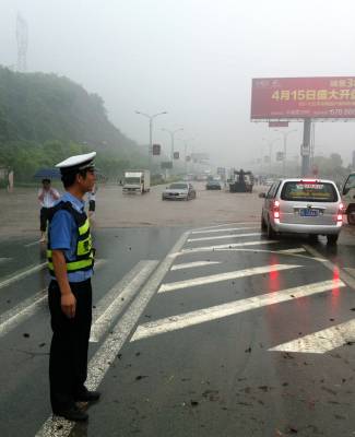 > 宜昌:暴雨肆虐 交警“泽国”救车