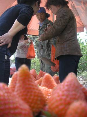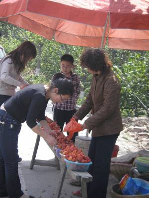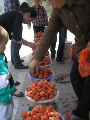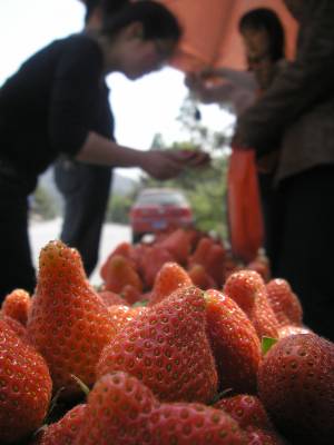 4月24日,游客在郧县茶店镇樱桃沟村村民家门口品尝选购新上市的草莓。该村是我省生态旅游名村,致力规模发展草莓、樱桃、蜜桃、柑橘等时令小水果产业带动农家乐餐饮业,引得八方游客慕名争相前来观光。 (作者:曹相聪 单位:郧县茶店中学 通联:15272299309 邮编:442512)