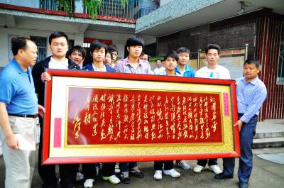 5月30日,云梦县梦泽高中高三学生将一块书法牌匾赠给母校,以作留念。毕业在即,该校高三学生或留言赠恩师,或自制礼物送学校,以各种方式表达对老师和母校的感恩之情。视界网周晓文摄