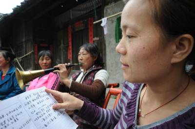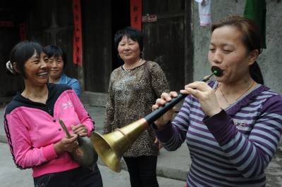 眼前的田翠萍、黄运玲等8位妇女, 近些年来,男的常年都外出打工,她们在家里带带小孩子、种种地,闲来无事就聚在一起斗地主、打麻将,有时还三邀四伙计跑到镇上去搓几把,是当地出了名的牌迷。今年该镇开展树新风尚、换心面貌、建新农村“三新”活动,倡导全镇百姓不整无事酒,不打牌赌博、孝敬老人。闲下来的她们一合计,决定成立一支女子“锣鼓队”,为村民做点有益的事。她们这一举动得到左右邻舍大力支持,纷纷主动凑钱购乐器,这更坚定了她们信心。