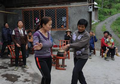 从正月十五开始,她们每家轮流转负责生活,请来师傅,学起艺来有钻劲,特别吃得苦。前不久,我的爷爷过世了,她们来热闹了两天两夜,一分钱也没收。受到村民啧啧称赞。下一步她们将吸引更多的姐妹加入,还把表演队搞起来。用她们话说,倡导社会新风尚,自己本是就是一部“活教材”。本报视界网刘波摄