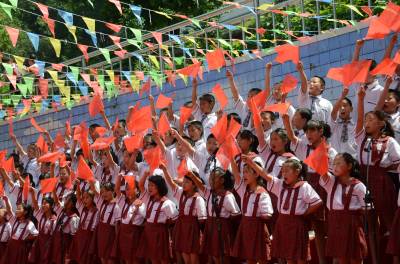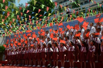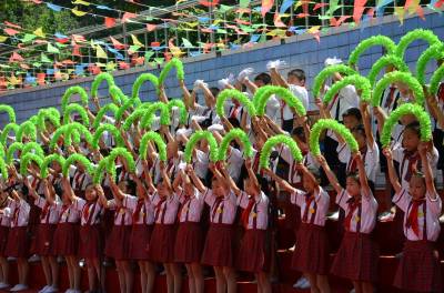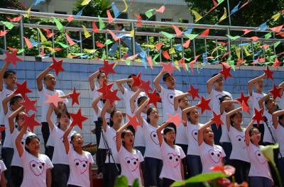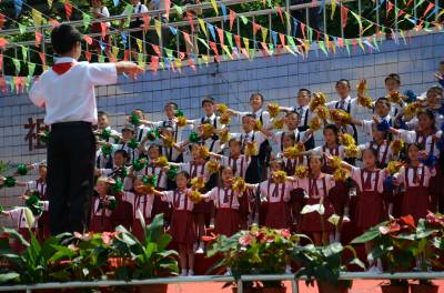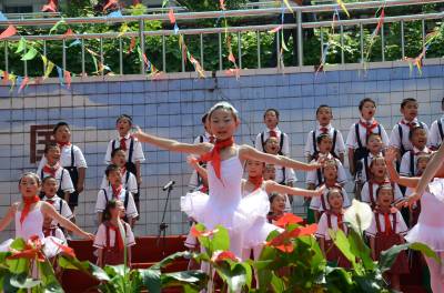 文艺展演采取合唱的形式,以班级为竞赛单位,全校32个班级2700余名少年儿童依次登台表演。一个个精彩的文艺节目,一张张天真可爱的笑脸,一阵阵充满童稚的歌声伴随着激励的掌声,给大家带来无限的幸福和快乐。充分体现了广大小朋友天真活泼、蓬勃向上的精神面貌。(本报视界网 陈泉霖 摄)