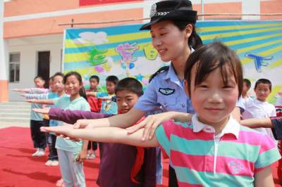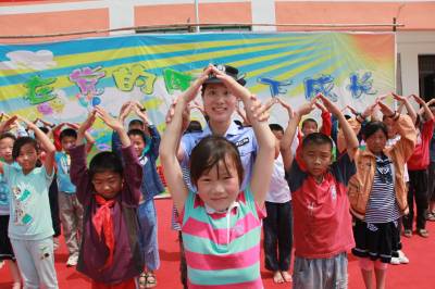 5月30日上午,26岁的武汉铁路公安局麻城公安处“警花”常雪芹来到黄冈市红安县八里镇的一所希望小学(由一名香港爱心女士捐资兴建),给这里的大别山“留守娃娃”送来了文具,并教她们跳舞、做操,共同喜迎“六一”儿童节。