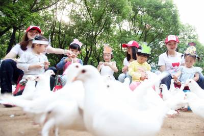 当天下午,在龙泉公园盆景园内,志愿者们陪着辖区近10名留守儿童一起画画,对年纪较小的小朋友,就手把手地教;年纪稍大点的小朋友,指点一下就让他们很开心,马上照办。不一会,各种色彩鲜艳的卡通图画就画好了,虽然稚嫩,但充满了无尽的想象。随后,志愿者们又陪着他们做老鹰抓小鸡、丢手绢、赛跑等小游戏,偌大的公园内,充满着他们纯净的欢声笑语。最后,大家一起喂鸽子,与“和平天使”亲密接触,这一刻,他们多么希望爸爸妈妈能看到绽放在脸上的笑容。