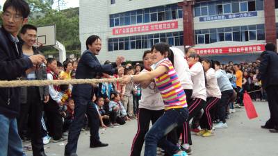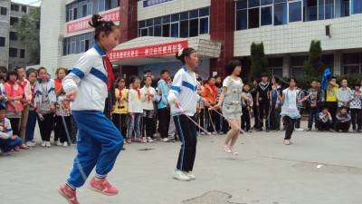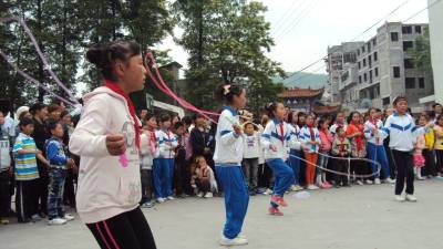该校是“全州五个一工程建设示范校”。下午,在学校运动场上举行了跳绳、踢毽子、拔河等民族体育活动。为保证学生身体健康,提高学生身体素质,弘扬民族传统文化,学校大力开展“民族体育项目进校园”活动,每到课间,校园可热闹了,跳绳、打陀螺、跳房子、踢毽子、滚铁环、跳竹竿舞等民族体育运动的等随处可见。活动现场孩子们热情高涨,一个个优美的动作赢得了观众阵阵喝彩声。一系列的庆祝活动,充分展示了该校办学水平和办学特色,展现了学生的水平与特长,让学生度过了一个愉快而又有意义的节日。
