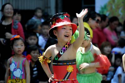 5月30日,宣恩县直机关幼儿园内,广大家长与孩子们正在兴高采烈的进行节目表演。当日,该幼儿园为喜迎儿童节的到来,开展以《亲情“六一” 快乐动员》为主题的各种趣味比赛活动。(本报视界网 戴俊 刘冬梅 摄)