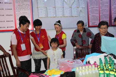 最小的志愿者名叫成果,今年10岁,在妈妈的带领下也来到福利院。他将手里的玩具等小礼物送给他们,教他们玩玩具,爱的暖流在涌动……