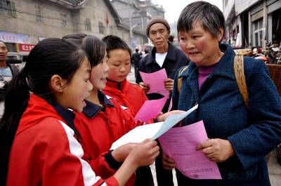 “红领巾志愿者”上街宣传环保(彭绍峰摄)