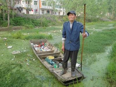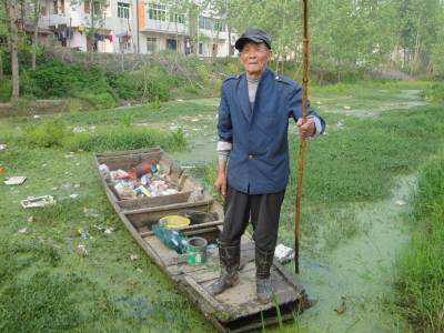 汉川市西江乡个体街上有一位叫代重阳的老渔民,今年82岁,一生以捕鱼为业。近十年来,老人在捕鱼的同时也打捞河面上的垃圾。据老人讲,他每年打捞的可卖到废品回收站的垃圾都在万斤以上。图为老人撑着竹竿在长河里打捞垃圾。(本报视界网 胡先华 摄)