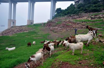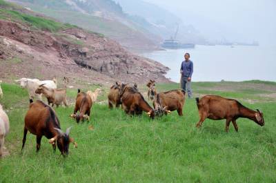 3日,一大清早,巴东县官渡口镇五里堆社区四组农民文世宝赶着山羊到江边吃草。据了解,今年61岁的文世宝从土地实行承包起开始养羊,年收入一万多元。三峡库区蓄水后,原有的30多亩山林被淹没。于是,他除了原有本地山羊外,在外地购买了黄羊、波尔羊种,现已放牧羊群达110只,蓄水到175米时就用船装着羊子到河对面或神农溪里面的草场吃草,退水时赶着山羊到江边吃草,发起了“羊”财,年收入达5万余元。(本报视界网穆世祝摄)