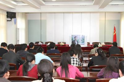 4月25日上午,刘军同志事迹报告会在钟祥城区大礼堂举行,钟祥市电视台对报告会进行了现场直播。该市各乡镇场库、市直各部门组织机关干部观看现场直播,聆听4位报告人从不同角度讲述牺牲在“千名干部进村入户”活动中的钟祥市国土资源局干部刘军的感人故事。图为钟祥市教育局组织机关干部观看现场直播。