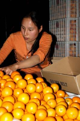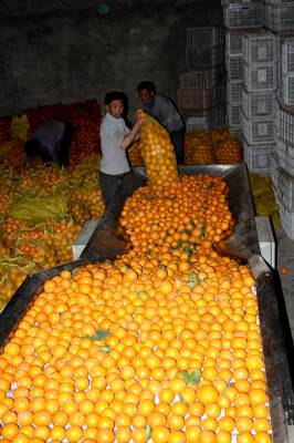 4月24日,在“夏橙之乡”、革命老区秭归县泄滩乡陈家湾村七组水泥公路上,来自河南省的客商周先生正在收购已经成熟的夏橙。当天,村民王正红销售夏橙近2吨,价格为每公斤2.60元,收入达5万余元,由此拉开了今年泄滩夏橙销售工作的序幕。 泄滩夏橙现有种植总面积14000余亩,年总产量突破1.4万吨,全乡近万柑农每年夏橙总收入可达4000万元以上,夏橙产业成为该乡柑农致富的主要经济支柱之一。 视界网 王爱平 摄