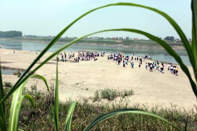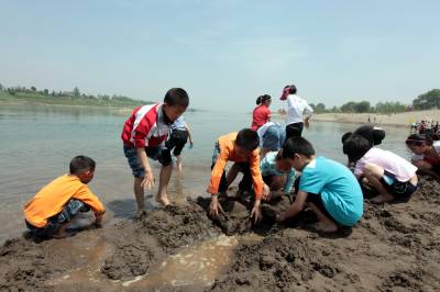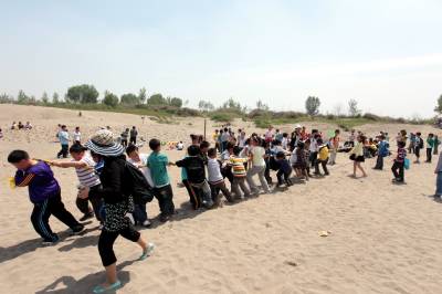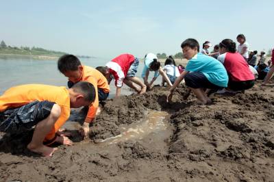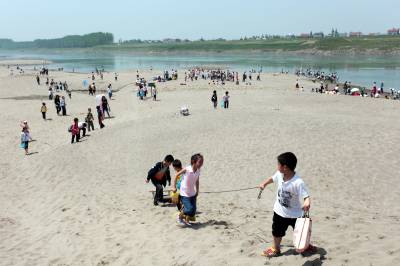 享受快乐生活 4月23日,小朋友在枝江沙浪奇观景区自由自在地活动。当日,来自湖北省宜昌市城区的400多名小学生聚集在枝江市董市镇沙浪奇观景区,开展拔河比赛、荡秋千、沙滩漫步、生活素描、水边游戏、创意设计活动,他们在长江的江心岛上放松心情,感受大自然的神奇,享受生活的乐趣。本报视界网 刘卫东摄