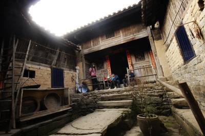 这个石头院子,小地名叫茅桐树梁。背靠大山,面临堵河,已有106年历史。全院有袁姓人家5户四代30多口人。现存一进三重的石头房子21间,占地面积600多平方米。