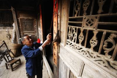 “袁家是大户,我 ‘呀’排行老五。光绪三十一年 (1905年)盖的房子。”4月25日,今年82岁、家住竹山县楼台乡官坪村的袁大发说。