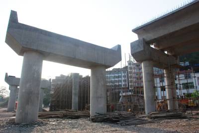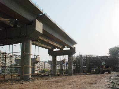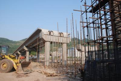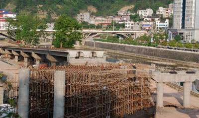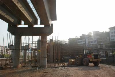4月25日拍摄的宣恩县莲花坝立交桥施工现场。近年来,宣恩县围绕以贡水河为核心的“一轴两翼”城市格局,实施“两桥两路两坝”、“ 贡水之滨”等城市建设项目,进一步扩展了城市骨架。