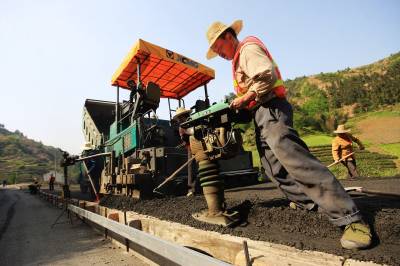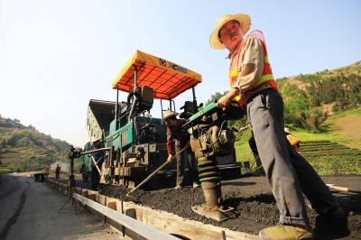 4月26日,工人在省道竹向路竹山段摊铺水泥稳定砂基层。省道竹向路是十堰市南部山区通往重庆的重要出省通道,交通繁忙。由于建设年代长久,现有的沥青路面破损严重,影响来往车辆和群众出行。这次大修工程按照“裁弯、除险、加固”的原则维修里程30公里,投资2400多万元,预计10月竣工。交通部门提醒,为确保该路段交通畅顺,希望途经该路段车辆服从交通指挥,减速行驶,有序行车。(本报视界网 章磊摄)
