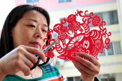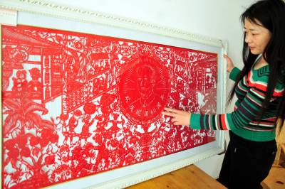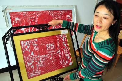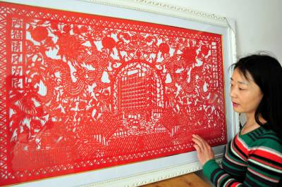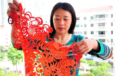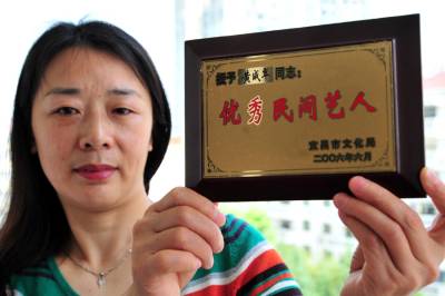 现在,他的剪纸作品被人们当作高档的文化饰品,挂到了宾馆、饭店和机关办公室,还有一部分被人们作为礼品送到海内外,不少作品走进文化艺术展览大厅。2004年,黄成翠被湖北省民间文艺家协会工艺美术委员会吸收为会员;2006年,她被宜昌市文化局表彰为优秀民间艺人;2009年,她的剪纸作品《一身正气为官、两袖清风为民》荣获宜昌供电系统“迎祖国六十华诞、廉洁文化作品展”艺术类一等奖。 本报视界网 张国荣 摄