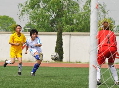2011.04.26.湖北省中学生运动会女足比赛.在襄阳五中举行.首场比赛襄阳队以9;1战胜天门队.