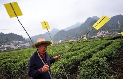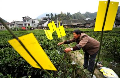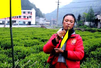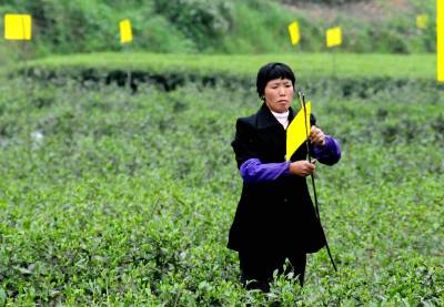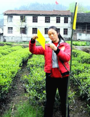 根据抽样检验,在1周的时间内,黄板诱杀的害虫有6个种类,数量均在300只以上。马春林介绍:“黄板与昆虫性引诱剂配合使用,可对茶小绿叶蝉等茶园主要害虫起到很好的诱杀作用。在茶园中采用这种生物防治措施,减少化学农药的使用,既为茶农节约了成本,也降低茶叶中的农药残留。”