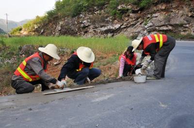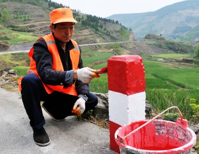 图片 郧县全面维修境内128公里209国道水毁路面 4月27日,郧县公路局锦宏路桥公司的100多名职工们正在209国道谭山段以及各路段修整路面,并铺设黑色混凝土沥青。自去年郧县公路局组织力量抢修境内因连续强降雨冲毁的3000多公里国,省,县,乡,村桥梁,滑坡和公路后,今年组织力量修复破损路面。 图为养路工刘永周正在209国道白桑关段粉刷防撞桩标志色时的情景。 周家山 卜昌明摄 郧县城管大队 电话13872840078 邮编442500