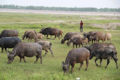倾力支持畜牧生产 4月27日,冷集镇甘家庄村农民在江滩牧牛。畜牧生产作为农民增收不可缺少在重要产业,近年来,谷城县农信社倾力支持农民、养殖大户发展畜牧生产,该社每年投放用于畜牧生产的小额贷款和大额贷款不少于3000万元。确保该县畜牧生产呈逐年上升势头,为农民、养殖大户增加收入提供了动力支持。 本报视界网马明刚摄