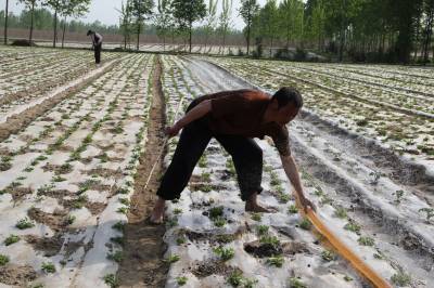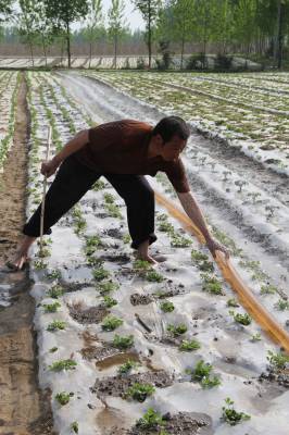 为春耕抗旱放贷款 4月27日,冷集镇李洲村农民在为地膜花生喷灌抗旱。近期天气持续干旱,非常不利于刚刚播种出土的玉米、花生、西瓜、蔬菜等农作物幼苗生长。谷城县农信社不失时机的投放小额贷款500多万元,帮助农民购买、维修抗旱设施,及时抗旱,确保全县20多万亩农作物正常生长。 本报视界网马明刚摄