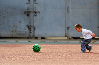 2011.04.26.湖北襄阳体育场玩球的孩子。