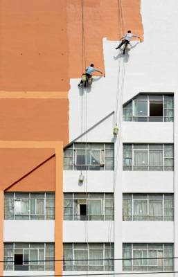 2011.04.24.湖北襄阳,工人在粉刷外墙。