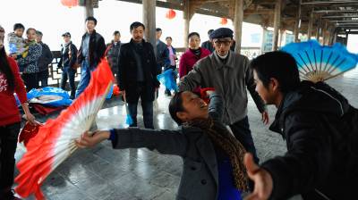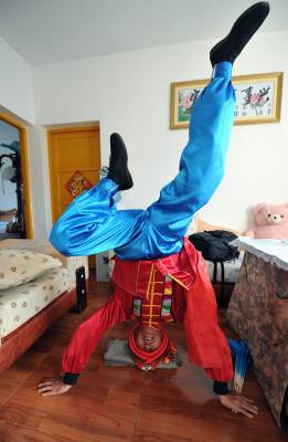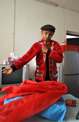 2003年6月,董兴林被恩施土家族苗族自治州人民政府命名为首批民间艺术大师,成为该项民间艺术的代表性传人。尽管已74岁高龄,董兴林仍然坚持每天练功、每天穿行在各文艺团体之间,免费给演员们传授技艺。他说:自己年纪大了,最高兴的是“宣恩耍耍”赶上好时代,随着全民健身运动的兴趣,这项民间艺术不仅仍然活跃在舞台上,甚至走近健身广场,使更多的人加入到了传承行业中。(宋文 摄)