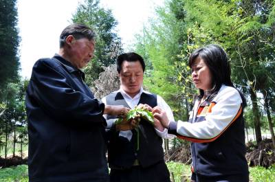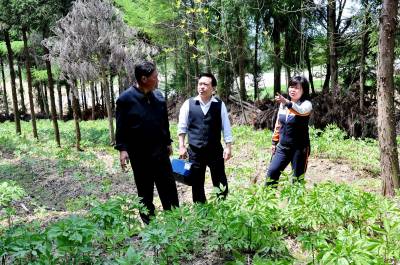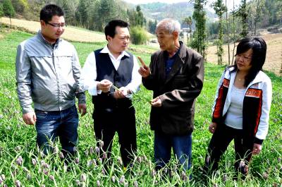 4月28日,恩施市红土乡药办、信用社工作人员正在为药材种植大户“流动办公”,现场解决技术、资金困难。 近年来,该市充分依托“华中药库”资源,大力发展中药材规模种植。林下经济发展呈现多元化趋势,林下养殖、食用菌、林菜以及林药间作等模式,提升林业附加值,使林下经济成为全市农村经济新的增长点。截止目前,全市林下经济开发面积26多万亩,全年药业综合产值可突破3亿元,让更多的百姓从中得以实惠。视界网彭绍峰摄