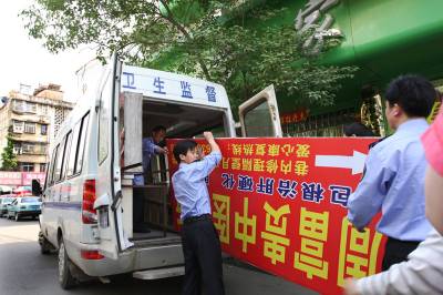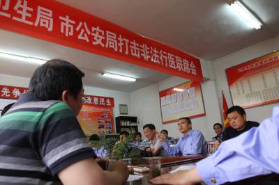 随州开展打击非法行医行动 4月28日,随州市卫生监督局、公安等部门联合执法行动,在辖区背街小巷对一些非法行医场所进行了一次专项整治行动。当日,共取缔了4家无证诊所,现场查扣没收了相关药品和医疗器械,拆除了诊所招牌。 严厉的打击了非法行医者的嚣张气焰,对辖区非法行医行为起到了很好的震慑作用。 本报视界网杨文明摄
