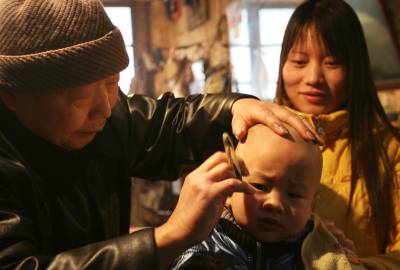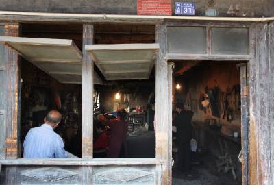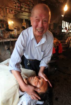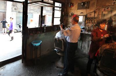剃头匠是中国民间的古老职业,在没有美容发廊的年代,剃头匠除了要掌握剃头、梳头编发和刮脸等基本技术之外,还要熟悉掏耳朵、剪鼻毛、修胡须等。在湖北竹溪县已有500多年历史的西关古街有一家老剃头铺,1943年由老剃头匠杨建发(已去世)创办,是一间距今68年从未间断营业的传统剃头老店铺。