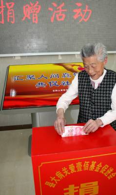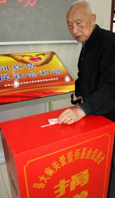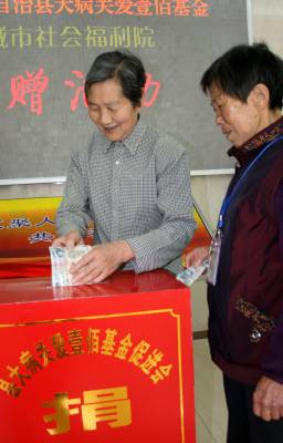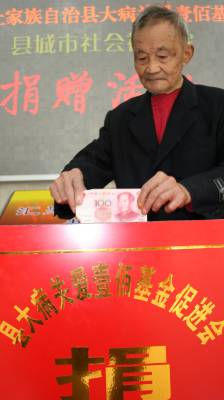 4月28日,长阳城市福利院的老人和工作人员24人自发为该县的“大病关爱壹佰基金”捐款1710元。89岁的江吉烈老人成为该县捐款队伍中目前年龄最大的一位。(通讯员杜强)