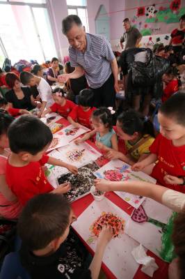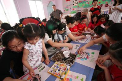 4月29日,仙桃市实验幼儿园内,家长与小朋友一起进行手工制作,共同体验劳动的快乐。当日,该幼儿园举行“家长开放日活动”,家长、孩子互动做游戏、绘画、表演、手工制作等,共享亲情的欢乐。仙桃市实验幼儿园通过各种途径开展丰富多彩的活动,使幼儿园、社会、家庭建立一种合作互补的关系,在彼此的互动中促进幼儿健康成才。吴三红摄