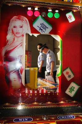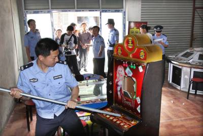 随州严厉打击电玩城赌博游戏活动 4月29日,随州经济开发区公安分局淅河镇派出所,在该镇背街小巷对一些电玩城及其他娱乐场所进行了集中检查整治,对涉及赌博游戏活动进行取缔。4月以来,随州市公安局充分结合社会治安排查整治、“严打整治”专项斗争、“扫黄打非”专项行动等专项工作,对全市游艺娱乐场所、茶楼等容易发生游戏机赌博行为的场所进行滚动排查, 有效地打击了电玩城赌博之风,净化了社会环境。 本报视界网杨文明摄